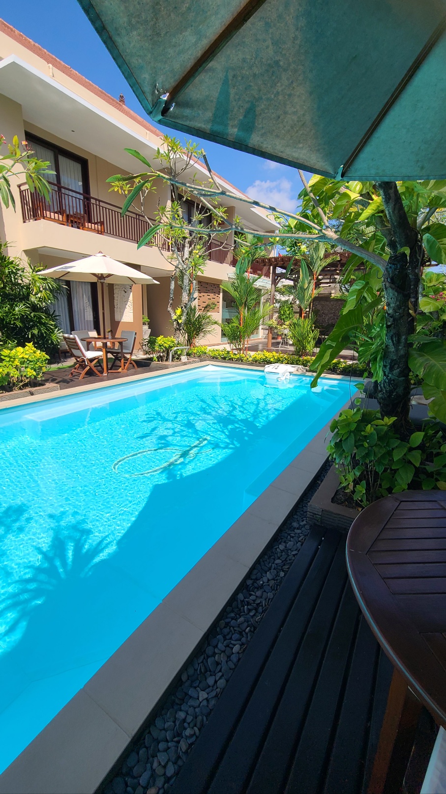 두번째 숙소는 Seminyak에 있는 D'penjor였다. 4개의 숙소 중에 제일 좋았던 곳이다. 발리에서 할 일들이 있었는데 정확한 위치를 몰라서 일단 내가 한 번 가본 쿠타로 첫 숙소를 잡았었다. 처음 3박 4일 동안 이것저것 하고 알아보면서 그 다음 숙소를 스미냑에 있는 디펜조르로 정했다. 여기에 일찍 가서 웰컴티를 마시고 가방 맡기고, 식사를 하고 돌아왔는데 1시 좀 넘어서 방에 들어가게 해줬다. 이 숙소에는 방문자들이 쓰다가 남긴 썬크림을 로비에 다 가져다 놨는데, 내가 마침 나가서 사려던 참에 그걸 가져다 쓸 수 있어서 좋았다. 조식은 부페가 아니고 메뉴를 미리 정해서 로비에 이야기하면 그 다음날 먹을 수 있었다. 음식 맛은 나쁘지 않았다. 체크아웃하는 날은 포장해서 받아갔다. 여기 수영장은 진짜 수영하고 싶게 생겼다. 수영장에서 노는 것도 즐거웠다. 방과 바로 연결되어 너무 좋았다. 방이 굉장히 컸다. 노트북을 켜고 일할 수 있는 공간도 너무 편하게 잘 되어 있었다. 텔레비전도 엄청 컸는데 넷플릭스를 볼 수 있어서 아주 좋았다. 안 좋았던 점은 에어컨이 중간에 꺼진다는 거였는데 그게 두꺼비집이 닫혀서 의자를 가져다가 다시 올리면 다시 나오기는 했다. 그리고 여기 앞에 개가 있는데 살짝 공격적이었다. 근데 항상 사람이 있어서 도와줬다. 여기는 중심가에서 좀 떨어져 있는데 그랩도 잘 잡히고 오히려 좀 떨어져 있어서 조용해서 좋기도 했다.