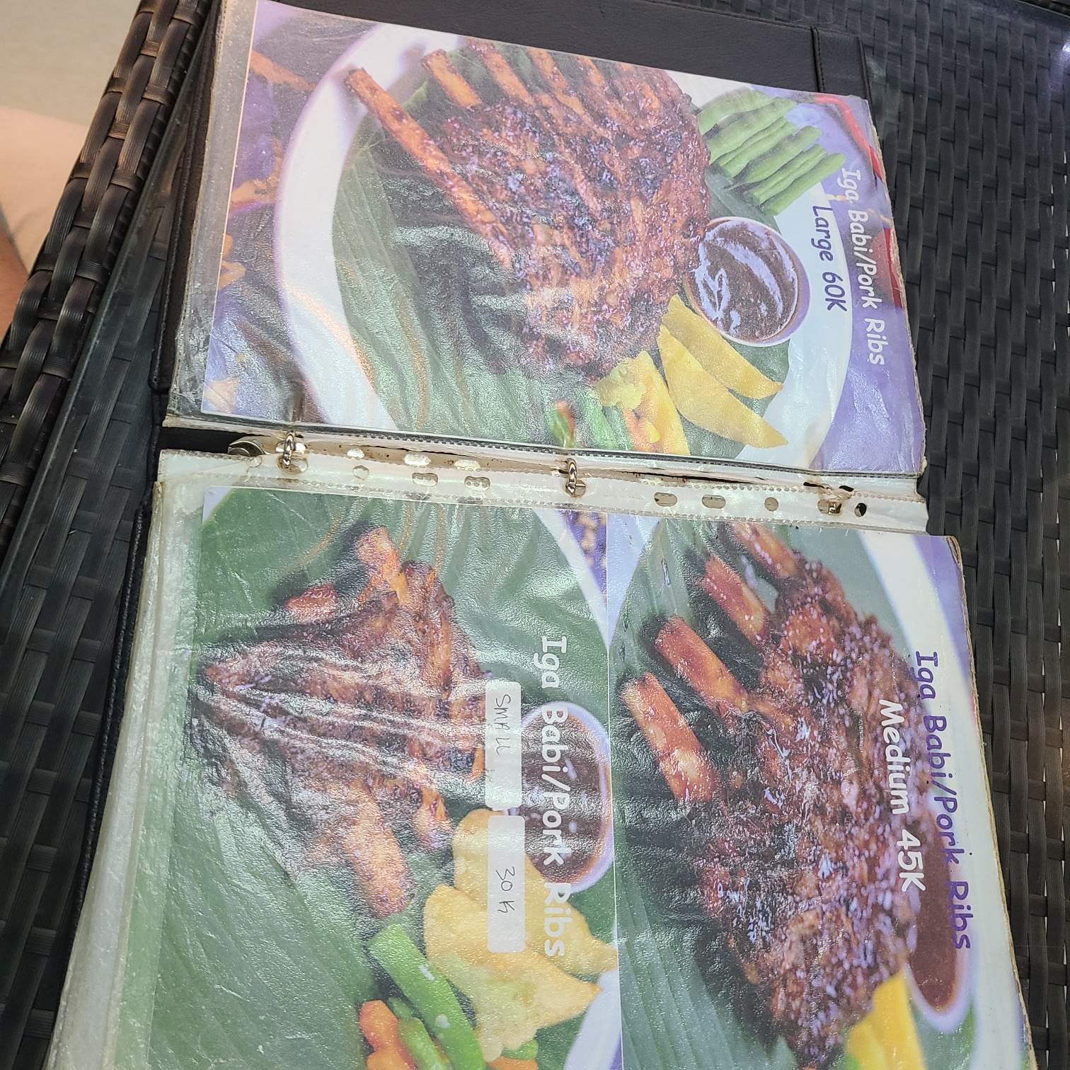 메뉴판에 보이는 대로 라지 사이즈는 60000루피아(6000원이 안됨), 미디엄 사이즈는 45000루피아(4500원이 안됨)다.