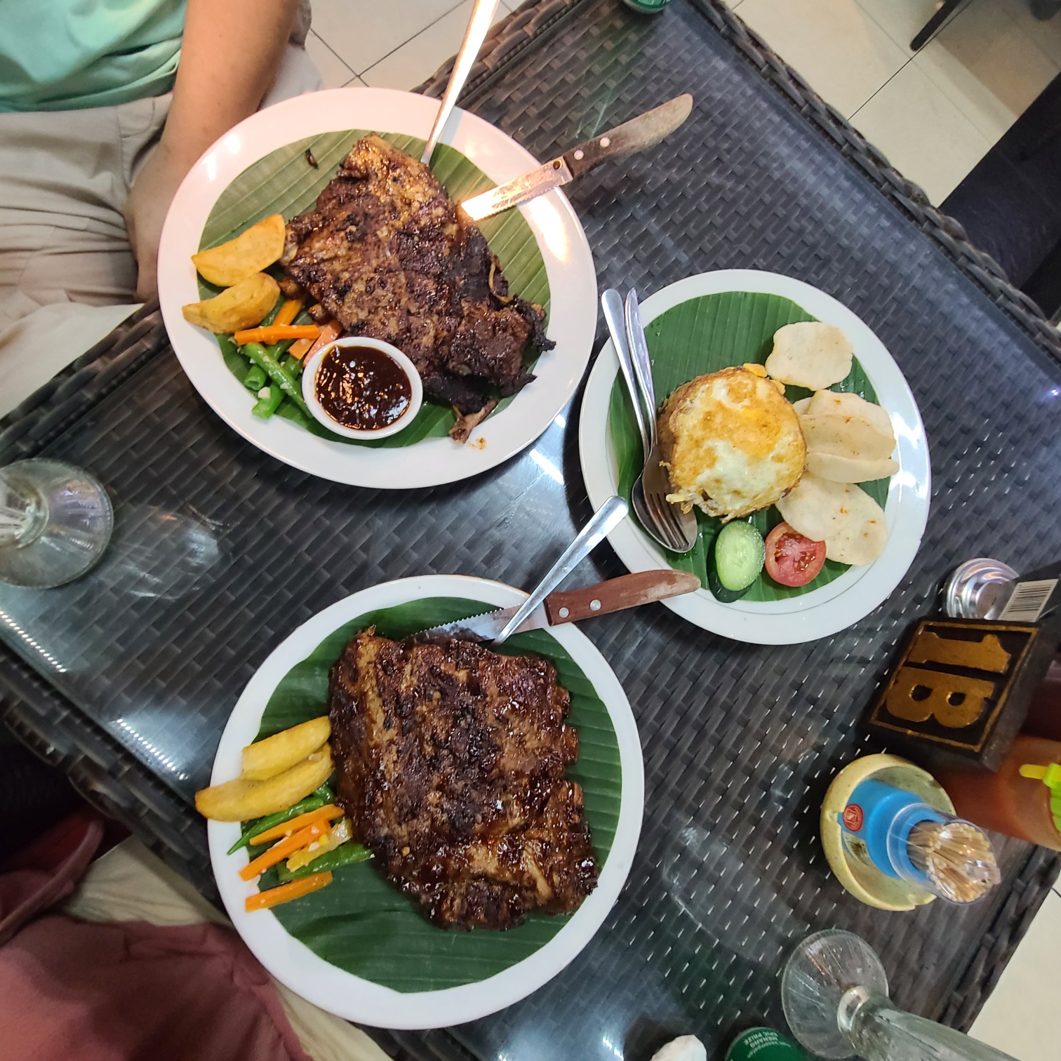 우리는 바베큐 폭립 라지 사이즈 2개와 나시고렝 2개를 시켰다. 음료는 없는 게 많았는데 나가서 사와도 된다고 했다. 총 결제 금액은 177,000루피아였고, 이건 17000원이 안되는 돈이다. 정말 싸다. 맛도 아주 좋았다.